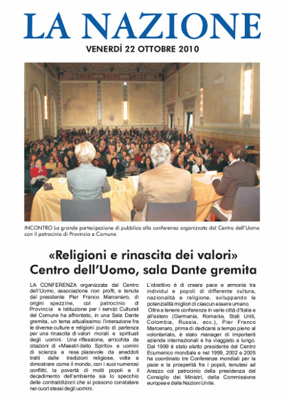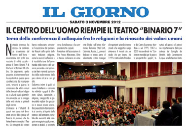 ZENTRUM DES MENSCHEN FÜLLT DAS THEATER "BINARIO 7 Konferenz zum Thema Dialog zwischen den Religionen und die Wiedergeburt der menschlichen Wert
