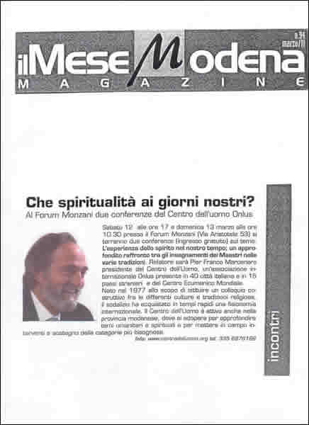 ZENTRUM DES MENSCHEN FÜR EINE NEUE MENSCHHEIT Kongress in Vercelli morgen und Sonntag