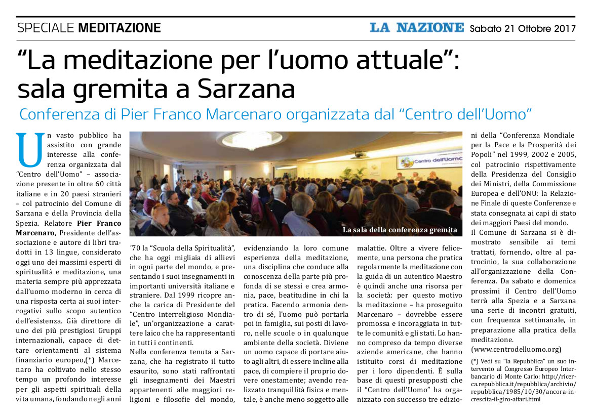 "MEDITATION FÜR DEN HEUTIGEN MENSCHEN“: EINE VOLLE KOFERENZHALLE IN SARZANA Konferenz mit Pier Franco Marcenaro, organisiert vom Zentrum des Menschen