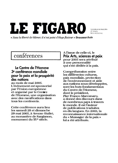 Einige der Zeitungen, die Nachrichten über die Aktivitäten des Zentrum des Menschen veröffentlicht haben, sind: