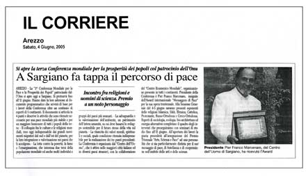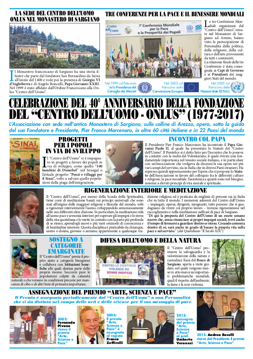 SARGIANO FRIEDEN AN VORDERSTER STELLE Feierlichkeiten zu 25 Jahre Zentrum des Menschen, eine Organisation, die sich mit wichtigen Themen befasst