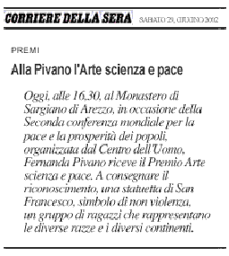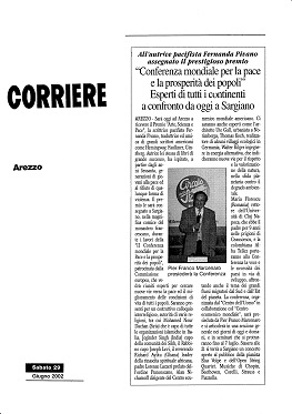 "WELTKONFERENZ FÜR DEN FRIEDEN UND DAS WOHLERGEHEN DER VÖLKER" Der renommierte Preis wurde der pazifistischen Autorin Fernanda Pivano verliehen. Experten aus allen Kontinenten debattieren heute in Sargiano