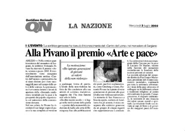 DER PREIS FÜR KUNST, WISSENSCHAFT UND FRIEDEN GEHT AN PIVANO Die Schriftstellerin aus Genua erhielt im Kloster von Sargiano die Auszeichnung vom Zentrum des Menschen