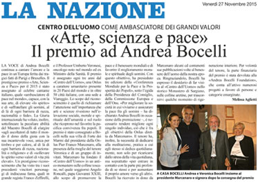 DER PREIS FÜR KUNST, WISSENSCHAFT UND FRIEDEN FÜR ANDREA BOCELLI Zentrum des Menschen als Botschafter der höheren Werte