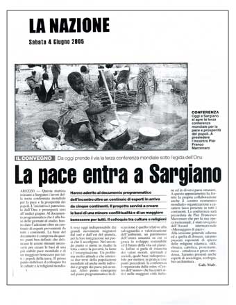 DER WEG DES FRIEDENS HÄLT IN SARGIANO INNE Die dritte Konferenz für den Frieden und den Wohlstand der Völker wird unter der Schirmherrschaft der UN eröffnet