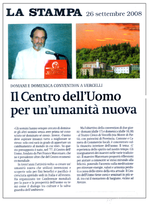 ZENTRUM DES MENSCHEN FÜR EINE NEUE MENSCHHEIT Kongress in Vercelli morgen und am Sonntag
